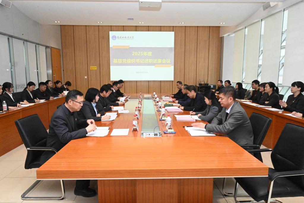 根据省委教育工委部署安排,3月13日下午,学校2025年度基层党总支书记述职述廉会在国际交流中心召开。学校党委班子成员、基层党组织书记、教师群众代表参会。省委教育工委组织部一级调研员王宏阁到会指导。会议由党委书记申永东主持。