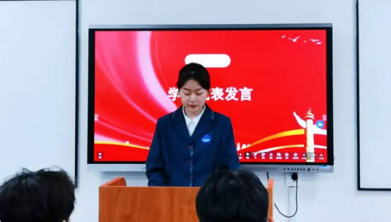 波兰语2301张译丹同学作为学员代表登台发言。她表示,党校是锤炼党性的“大熔炉”,呼吁全体学员须深耕理论,研读党章与创新思想,筑牢信仰之基;联结专业,在教育见习、志愿活动中传递教育温度;严守规矩,主动向优秀党员看齐,以行动诠释忠诚。